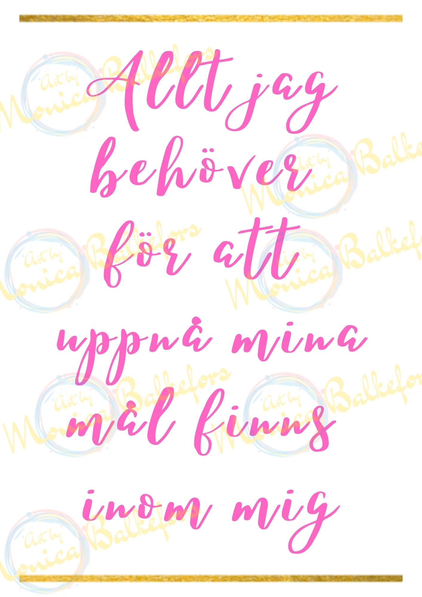 • Sätt lappar eller gör tavlor med dina affirmationen så att du ser dem varje dag och helst flera gånger per dag (du kan köpa en sådan tavla av mig, med din text på som jag sedan mailar till dig så att du kan skriva ut, pris 97:-)